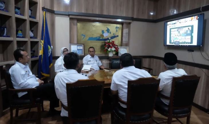 Turut hadir dalam pertemuan virtual tersebut Asisten III Abdul Hamid, Kepala Inspektorat Herlina, serta Kepala BPKAD Alias, bersama jajaran pejabat di lingkup Pemerintah Kabupaten Muaro Jambi.