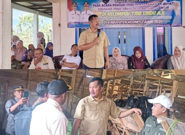 KERINCI,BITNews.id – Bupati Kerinci, Monadi secara resmi mencanangkan Kawasan Sentral Pengembangan Ternak Kambing Peranakan Etawa (PE) di Desa Batang Sangir pada Sabtu, 19 Juli 2025. Dalam kesempatan tersebut, Bupati juga menyerahkan Surat Keputusan (SK) kepada Kelompok Lindu Aji sebagai pelopor pengembangan kambing PE di wilayah tersebut.