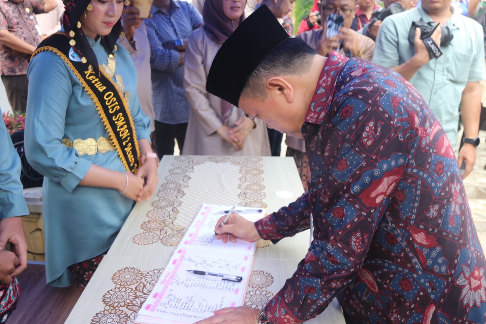 “Hari ini, saya menghadiri peresmian gedung ruang guru dan beberapa gedung lainnya di SMA Negeri 2 Muaro Jambi. Kami berharap SMA Negeri 2 Muaro Jambi, dengan jumlah siswanya yang signifikan, terus mencetak generasi muda berkualitas. Angka kelulusan dan penerimaan siswa SMA Negeri 2 Muaro Jambi yang terus meningkat setiap tahun menunjukkan peningkatan kemampuan siswa. Tugas kita adalah menggembleng mereka, baik dalam pembelajaran wajib maupun ekstrakurikuler,” ujar Gubernur Al Haris.
