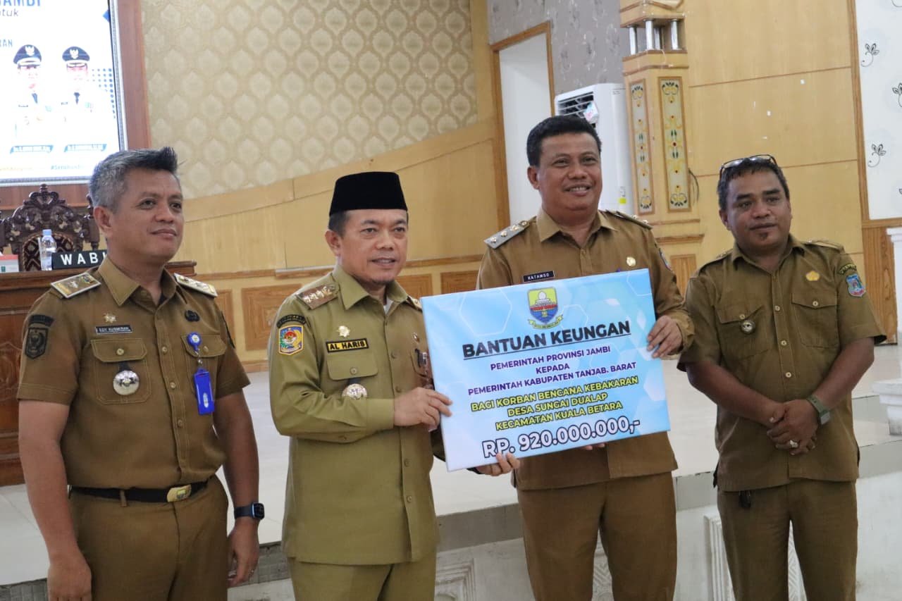 TANJABBAR,BITNews.id – Gubernur Jambi Al Haris menyerahkan bantuan senilai Rp1,1 miliar kepada warga terdampak kebakaran di Desa Sungai Dualap, Kecamatan Kuala Betara, Kabupaten Tanjung Jabung Barat, Senin (8/12/2025).