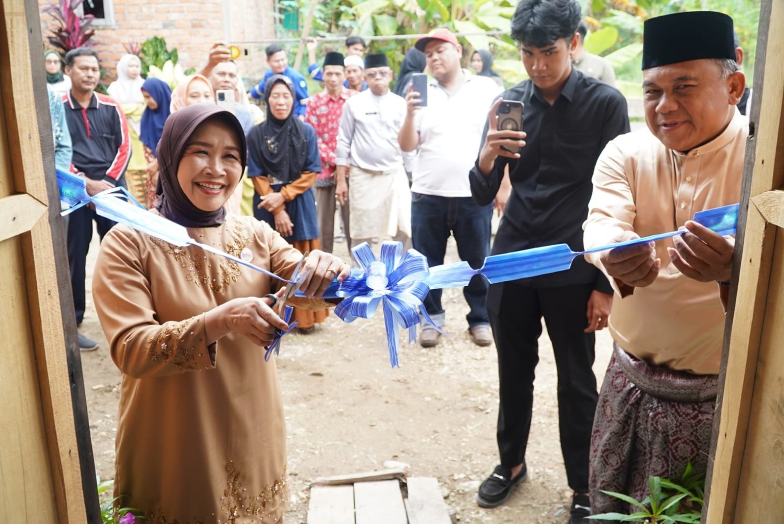 Selanjutnya, Hj. Hesti Haris meninjau program bedah rumah di Desa Sarang Burung, Kabupaten Muaro Jambi. Program tersebut ditujukan untuk membantu masyarakat kurang mampu agar memiliki hunian layak dan sehat.