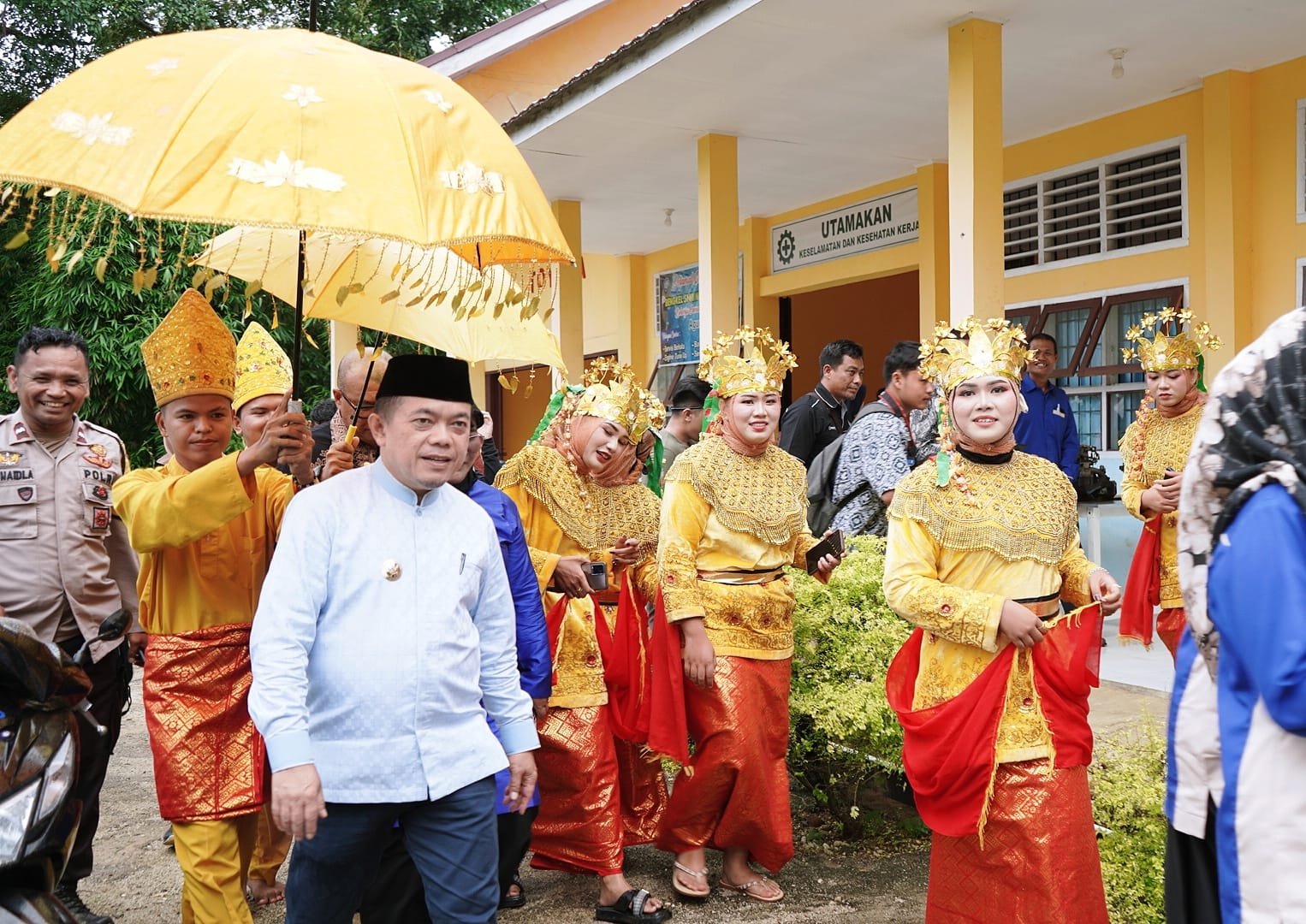 Kedatangan orang nomor satu di Provinsi Jambi beserta rombongan ini disambut hangat Kepala Sekolah SMK Negeri 8 Bungo Ir. Esnaria Purba bersama para guru dan siswa.