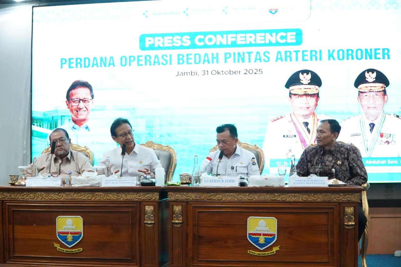 JAMBI,BITNews.id – Menteri Kesehatan Republik Indonesia Budi Gunadi Sadikin memuji langkah Gubernur Jambi Dr. H. Al Haris, S.Sos., M.H. dalam memperkuat layanan kesehatan di RSUD Raden Mattaher Jambi. Pujian tersebut disampaikan usai meninjau pelaksanaan operasi bedah jantung perdana di rumah sakit tersebut, Jumat (31/10/2025).