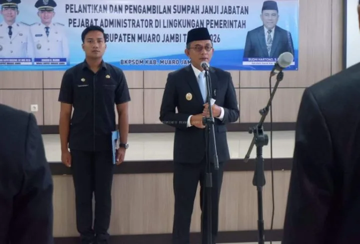 MUARO JAMBI, BITNews.id – Wakil Bupati Muaro Jambi melantik dan mengambil sumpah/janji 12 pejabat administrator di lingkungan Pemerintah Kabupaten Muaro Jambi, Rabu (18/2/2026). Pelantikan dilakukan atas nama Bupati Muaro Jambi sebagai bagian dari penguatan tata kelola pemerintahan berbasis kebutuhan organisasi.