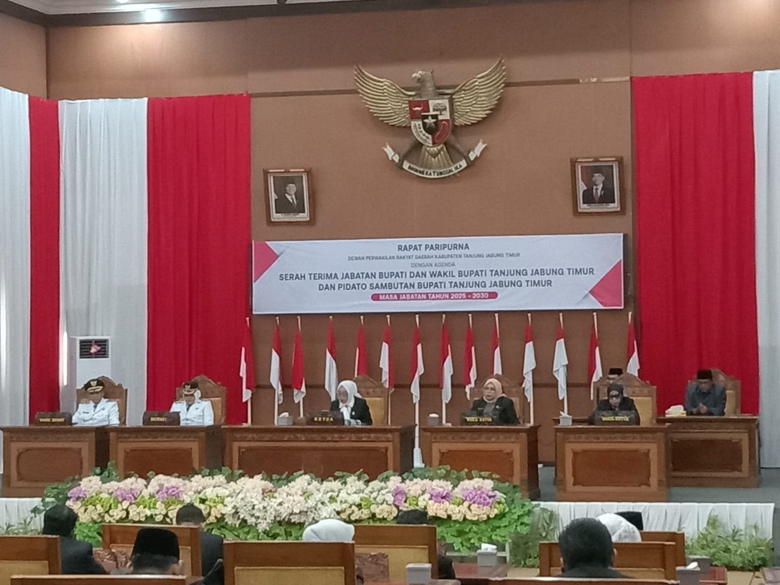 TANJABTIM, BITNews.id – Kabupaten Tanjung Jabung Timur resmi memiliki pemimpin baru. Serah Terima Jabatan (Sertijab) Bupati dan Wakil Bupati Tanjab Timur periode 2025-2030 berlangsung dalam Rapat Paripurna Istimewa DPRD di ruang utama Paripurna DPRD Tanjab Timur, Jumat (7/3/2025).