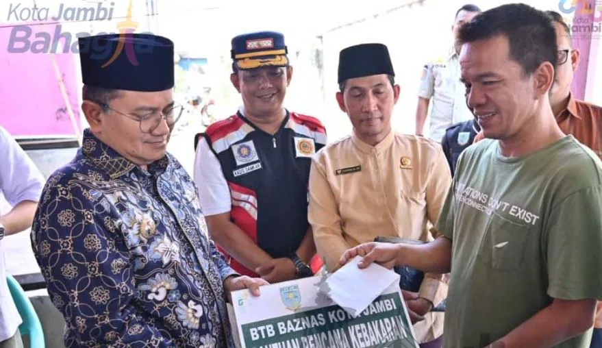 Pada kesempatan itu, Wali Kota Maulana dan Wakil Wali Kota Diza menyerahkan bantuan berupa bahan kebutuhan pokok, perlengkapan sehari-hari, peralatan sekolah, serta bantuan tunai sebesar Rp2.000.000 dari Baznas Kota Jambi.