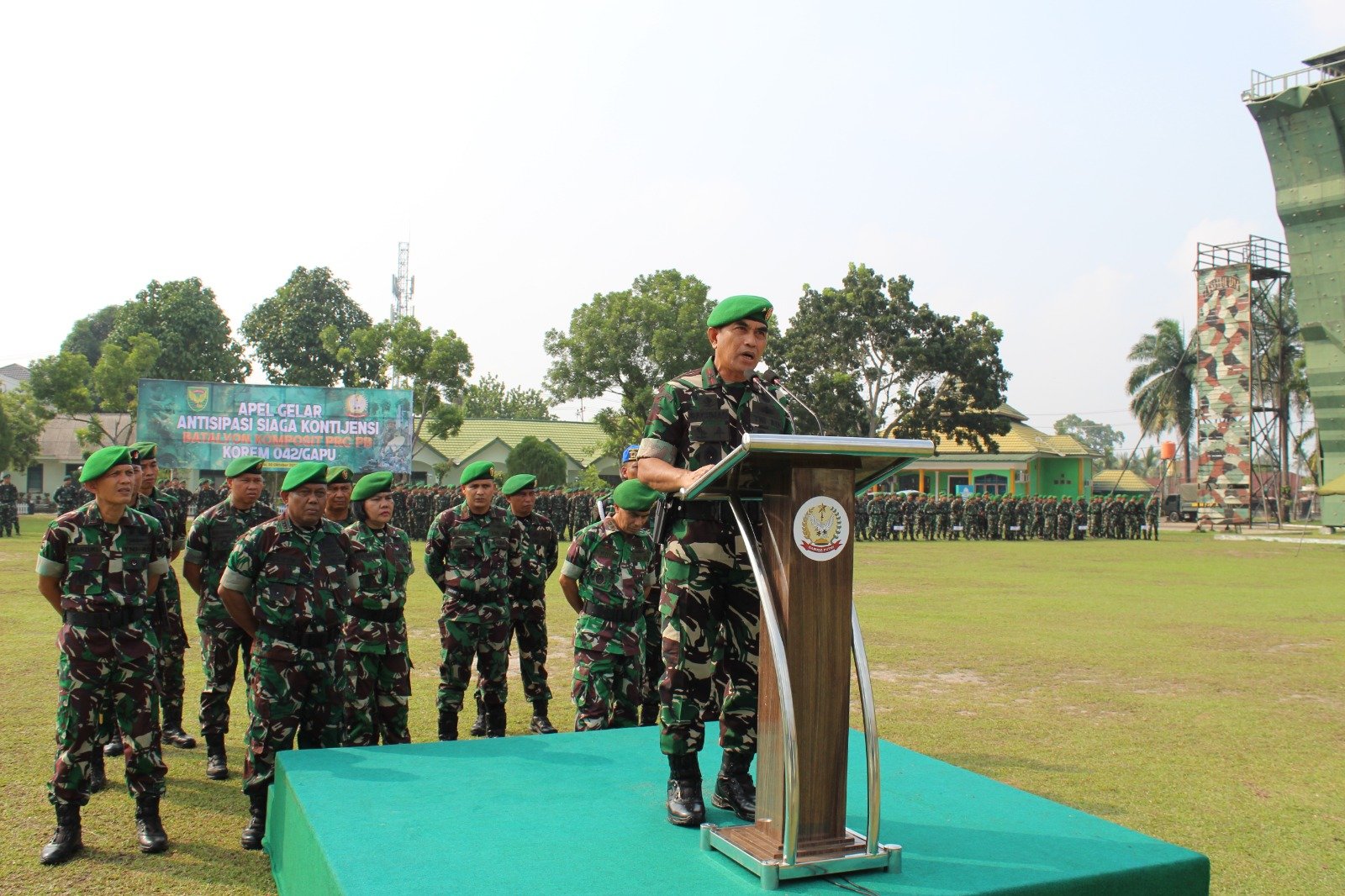 JAMBI,BITNews.id – Korem 042/Gapu menggelar Apel Siaga Kontinjensi Bencana oleh Batalyon Komposit Pasukan Reaksi Cepat Penanggulangan Bencana (PRC PB) di Lapangan Mayonif 142/KJ, Jalan Yos Sudarso, Kota Jambi, pada Rabu, 30 Oktober 2024 pukul 08.00 WIB. Apel ini dipimpin oleh Komandan Korem 042/Gapu, Brigjen TNI Rachmad, S.I.P., dan dihadiri oleh para pejabat serta personel terkait.