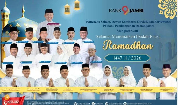 JAMBI, BITNews.id – Jajaran komisaris, direksi, dan seluruh pegawai Bank Jambi menyampaikan ucapan selamat menunaikan ibadah puasa Ramadan kepada nasabah dan masyarakat Provinsi Jambi. Manajemen memastikan layanan operasional tetap berjalan selama bulan suci dengan mengedepankan keamanan dan tata kelola yang baik.