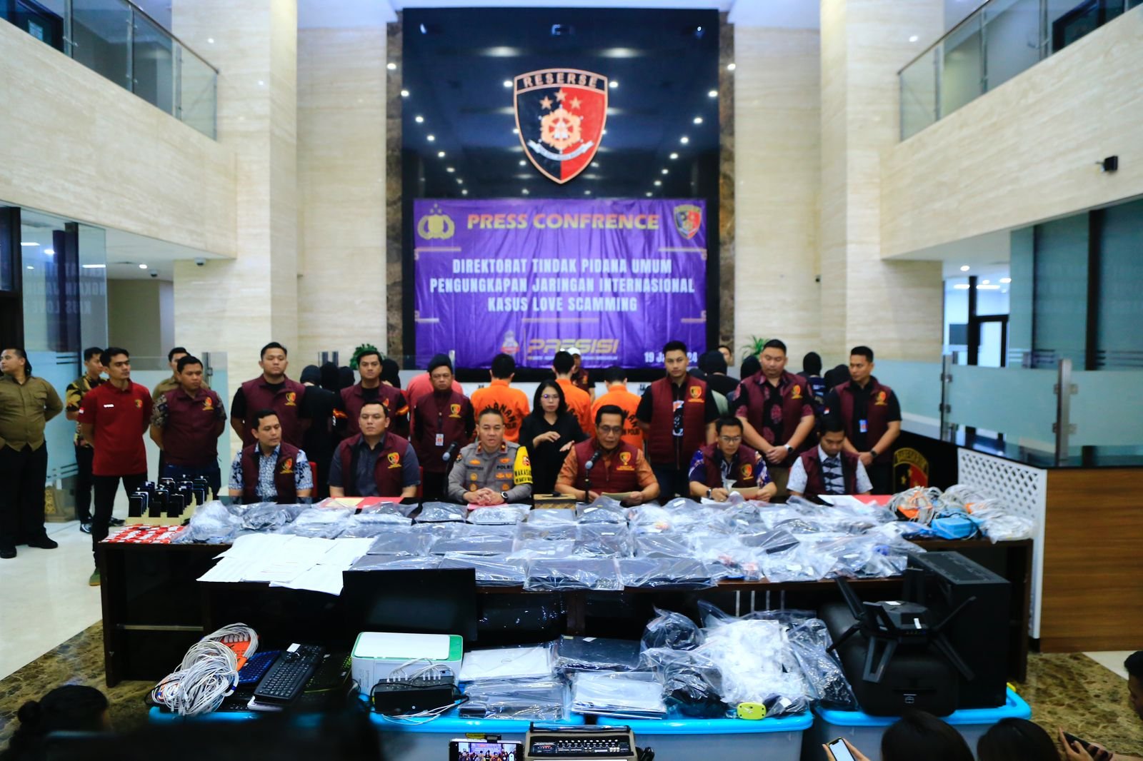 “Kami mengamankan 19 WNI terdiri dari 16 laki-laki dan tiga perempuan, serta dua WNA laki-laki. Dari pihak yang diamankan itu, tiga telah ditetapkan sebagai tersangka dan satu lagi tadi kita amankan dan masih pendalaman,” jelas Brigjen. Pol. Djuhandani Rahardjo Puro di Gedung Bareskrim Polri, Jakarta Selatan, Jumat (19/1/24).