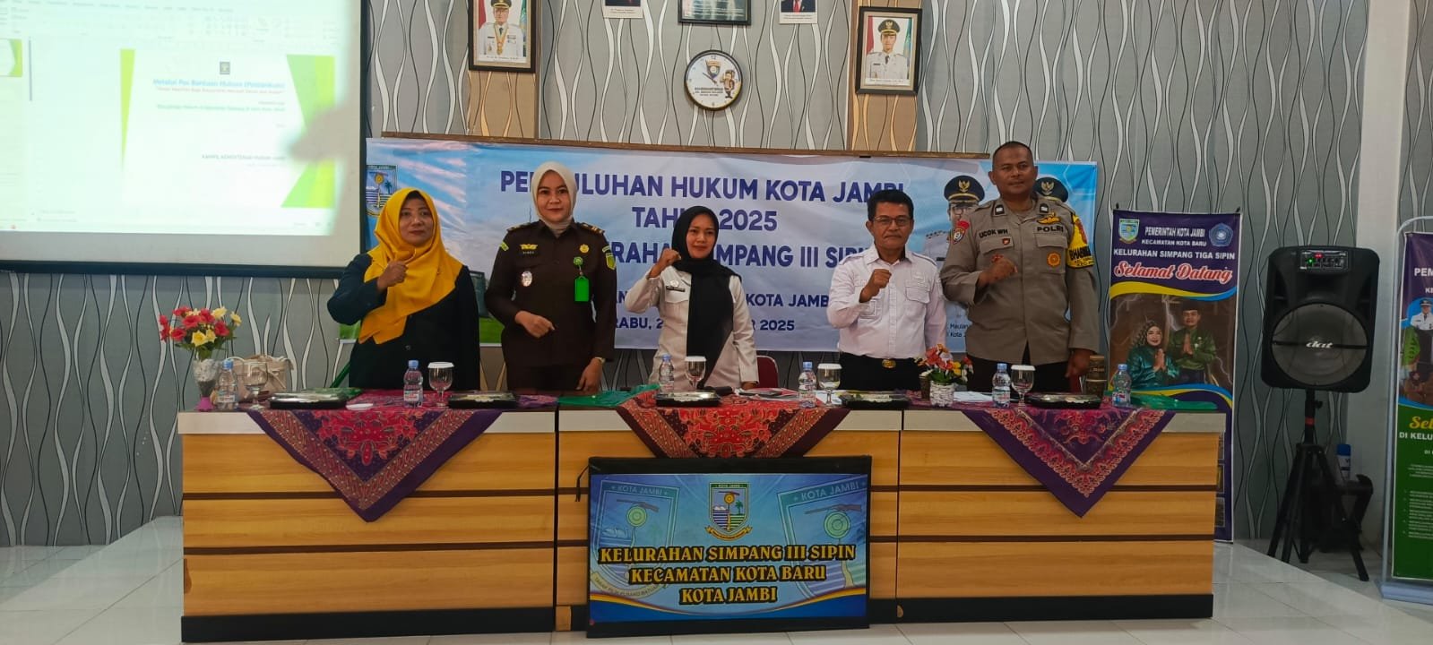 Kegiatan ini dihadiri oleh tiga narasumber dari instansi terkait, yakni Kementerian Hukum dan HAM, Kejaksaan Negeri Jambi, serta Posko Bantuan Hukum Kota Jambi.