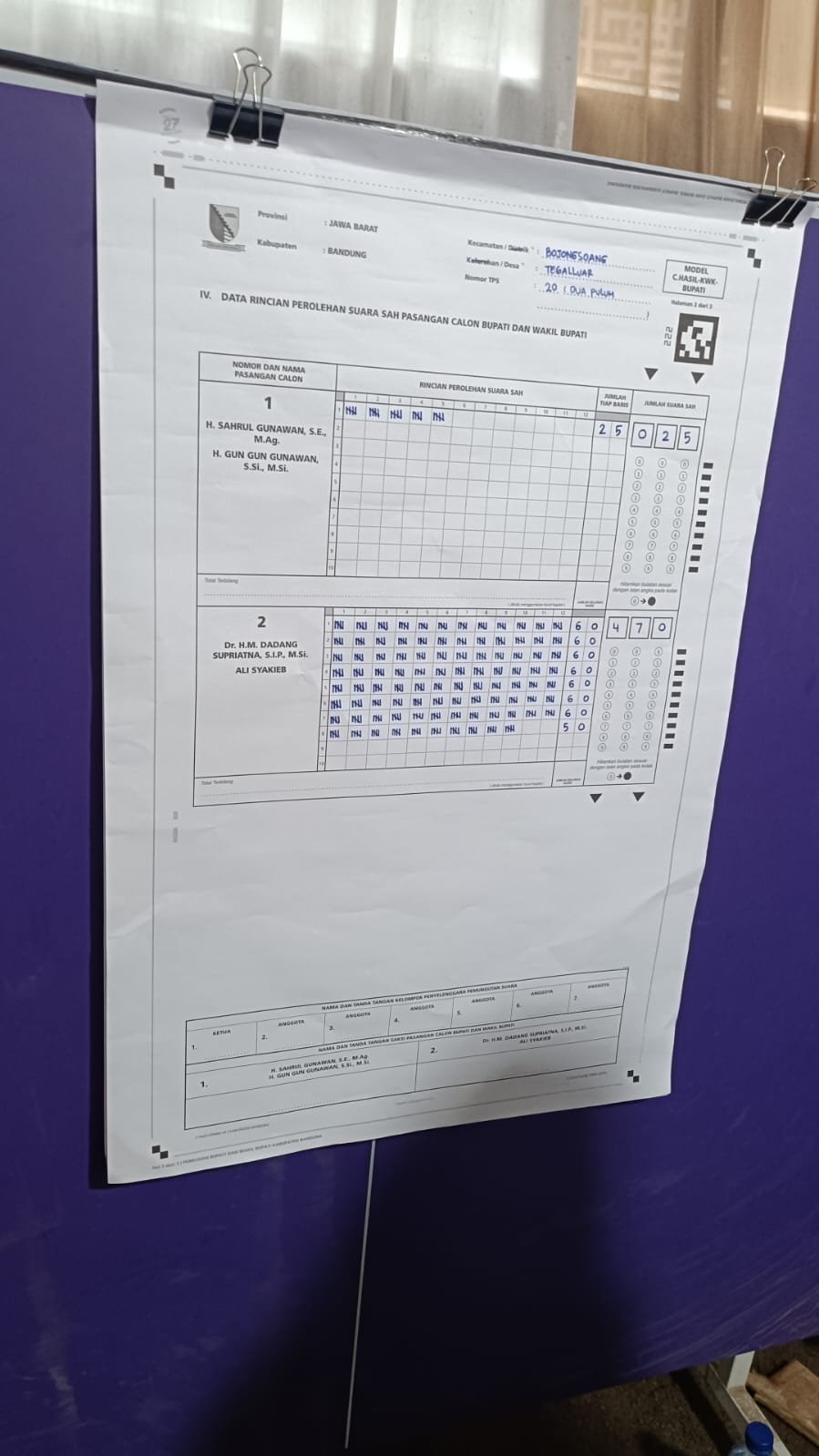BANDUNG, BITNews.id – Pasangan Dadang Supriatna-Ali Syakieb unggul di TPS 20, Desa Tegalluar, Kecamatan Bojongsoang.