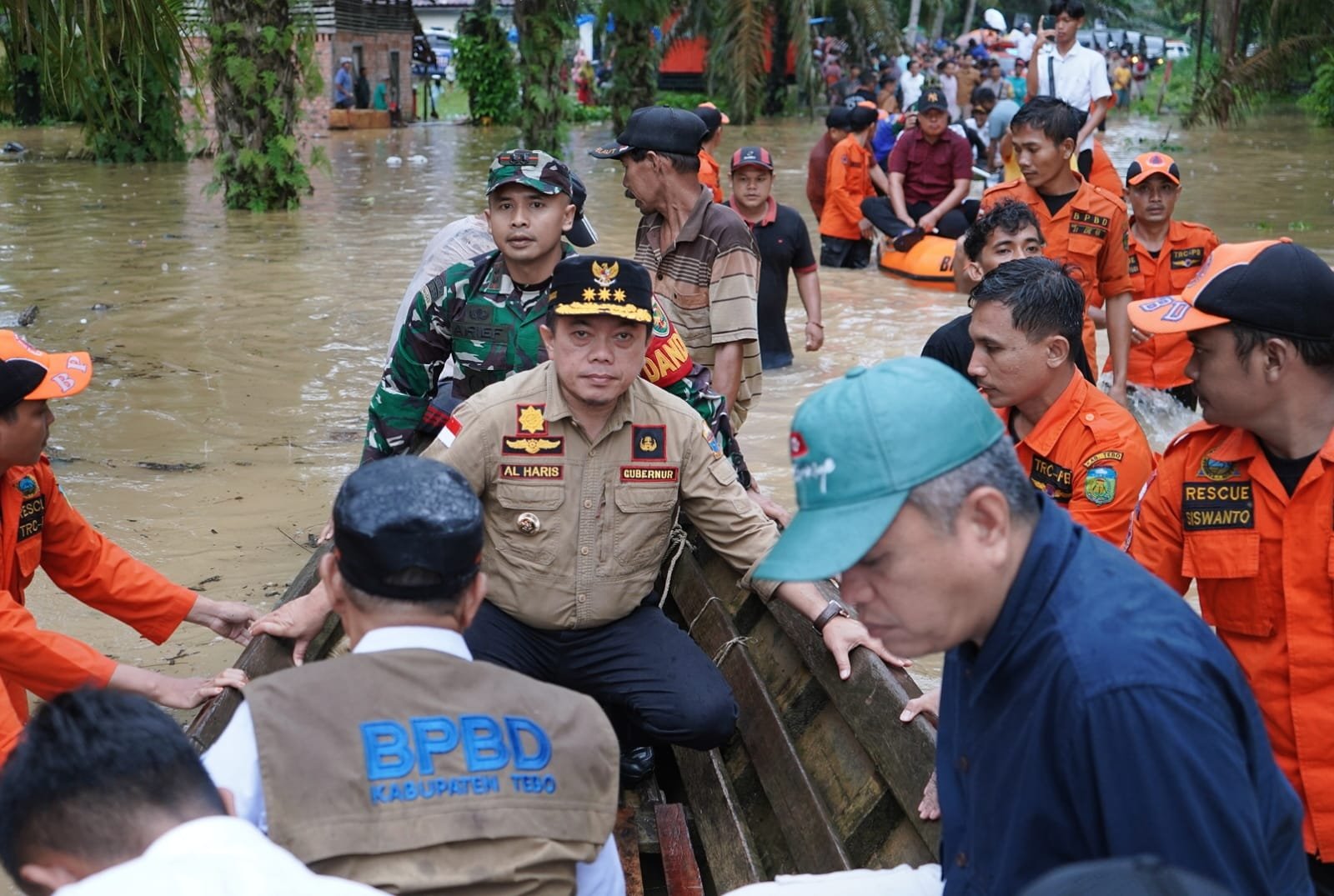 Gubernur Al Haris menyampaikan terima kasih kepada Pemerintah Daerah Kabupaten Tebo, TNI dan Polri serta relawan dan masyarakat yang telah bergotong royong menangani dampak bencana.
