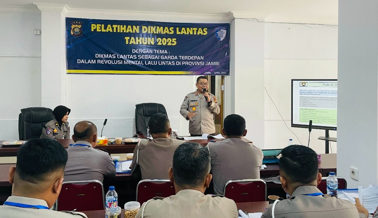 JAMBI,BITNews.id – Bertempat di Aula Ditlantas Polda Jambi, Senin (28/4) sekitar pukul 10.15 WIB, Dirbinmas Polda Jambi AKBP Henky Poerwanto, S.I.K., M.M., memberikan arahan sekaligus motivasi kepada para personel fungsi Lantas yang sedang mengikuti pelatihan dan peningkatan kemampuan Dikmas Lantas.