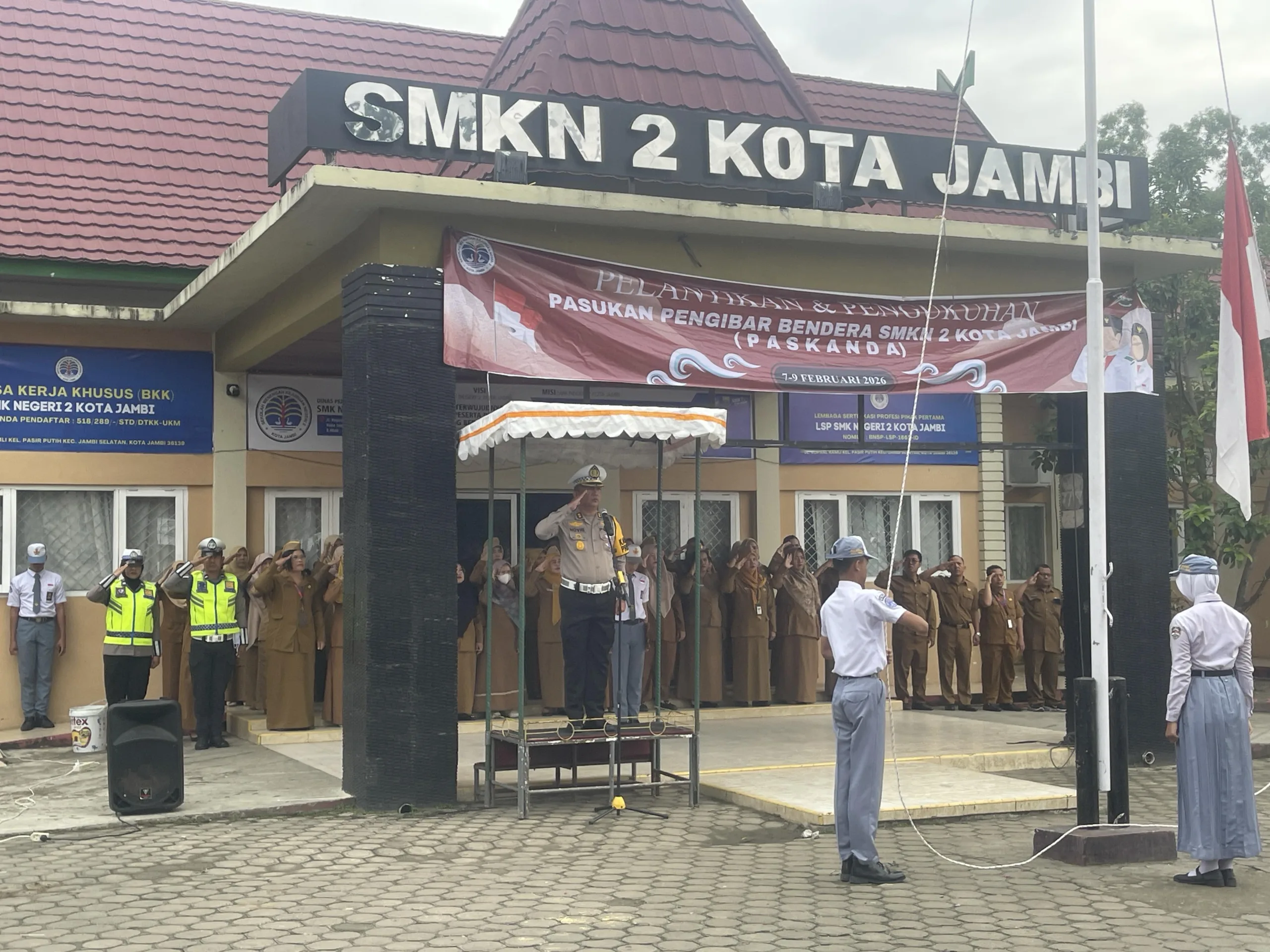 JAMBI,BITNews.id – Suasana upacara bendera di lapangan SMK Negeri 2 Kota Jambi, Senin (9/2/2026), berlangsung khidmat dengan kehadiran jajaran Direktorat Lalu Lintas (Ditlantas) Polda Jambi.