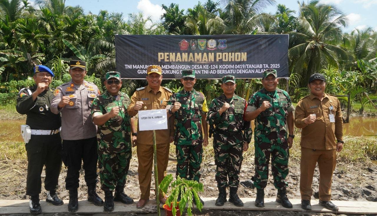 Koorsahli Kasad Letjen TNI Muhammad Zamroni memimpin langsung aksi tanam pohon tersebut, didampingi sejumlah pejabat, antara lain Kasrem 042/Gapu Kolonel Inf Eddy Basuki, Pamen Ahli Pangdam II/Swj Kolonel Inf Marcal Denny, Dandim 0419/Tanjab Letkol Arm Dwi Sutaryo, S.E., M.Han., Wakil Bupati Tanjung Jabung Barat Dr. H. Katamso, SA, SE, ME., Wakil Ketua II DPRD Hasan Basri Harahap, serta Camat Bram Itam, Rendriawan Akbar, SH.