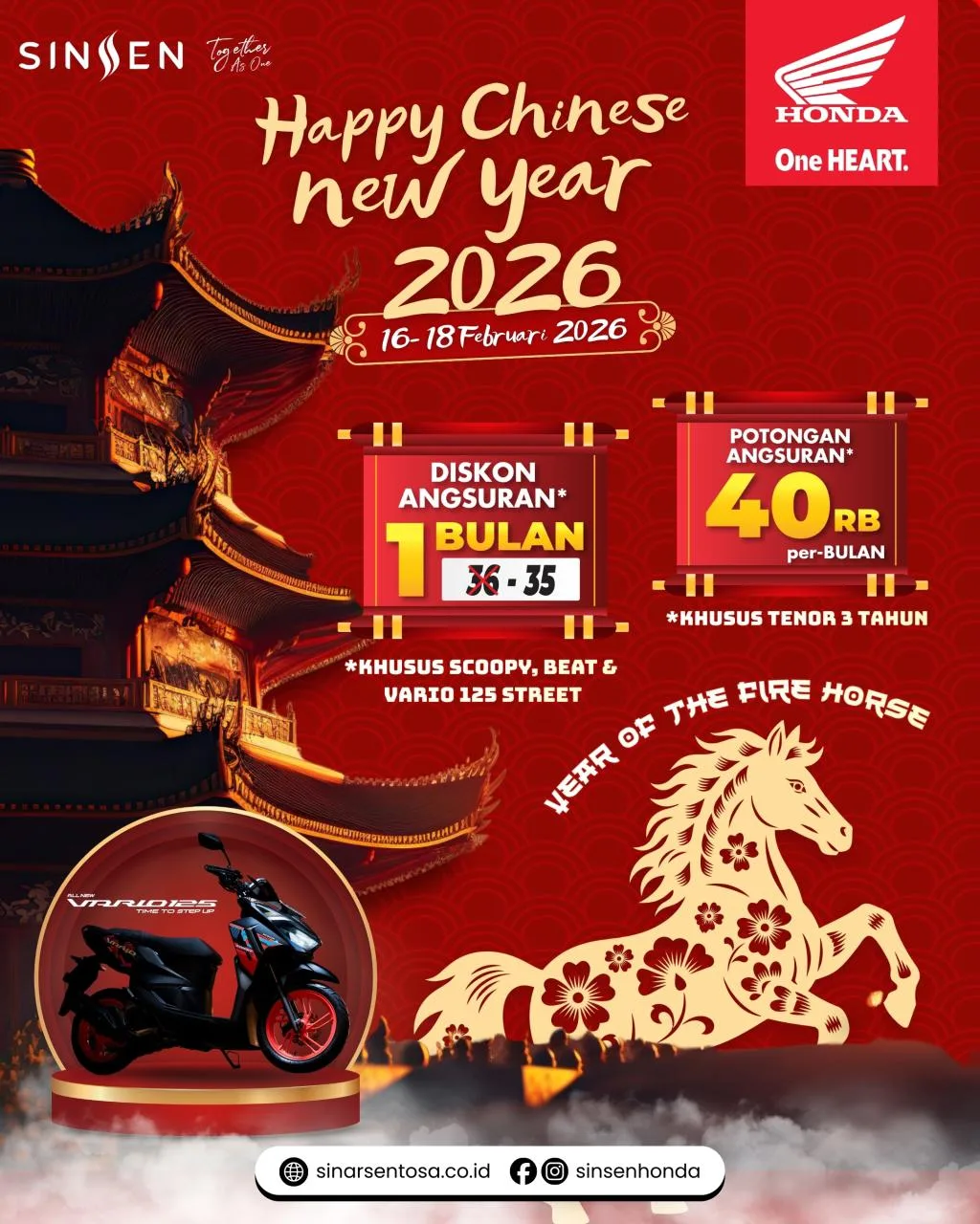 Mengusung semangat Tahun Kuda Api (Year of the Fire Horse), promo Imlek 2026 ini menawarkan diskon angsuran hingga satu bulan serta potongan angsuran sebesar Rp40 ribu per bulan khusus untuk tenor tiga tahun. Secara keseluruhan, konsumen berkesempatan memperoleh keuntungan hingga Rp2 juta.