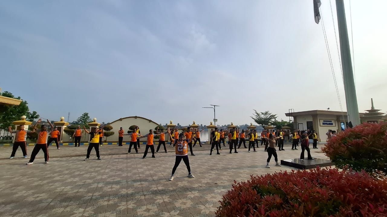 Suasana senam berlangsung ceria dan penuh antusiasme. Gerakan yang dipandu instruktur diikuti dengan disiplin oleh peserta, mencerminkan semangat jiwa korsa dan solidaritas tinggi dalam tubuh Polri, khususnya jajaran Ditpolairud Polda Jambi.
