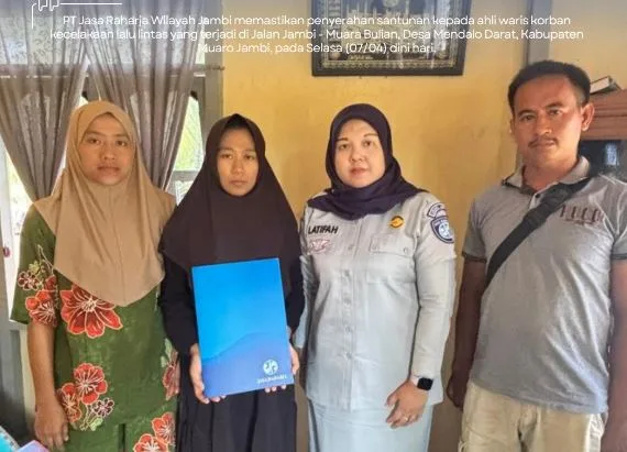 MUARO JAMBI, BITNews.id – PT Jasa Raharja Wilayah Jambi menyerahkan santunan kepada ahli waris korban kecelakaan lalu lintas yang terjadi di Jalan Jambi–Muara Bulian, Desa Mendalo Darat, Kabupaten Muaro Jambi, Selasa (7/4/2026) dini hari.