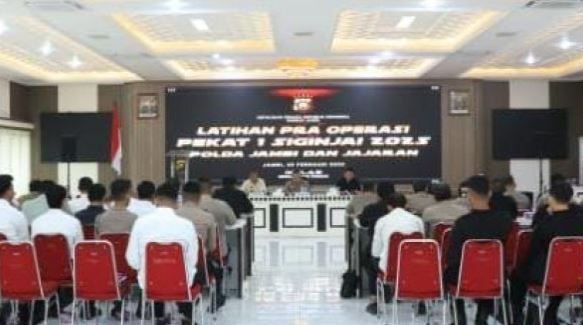 JAMBI,BITNews.id – Kepolisian Daerah (Polda) Jambi menggelar Latihan Pra Operasi Pekat I Siginjai 2025 di Gedung Siginjai Sakti Wirabhakti, Selasa (25/2/2025).