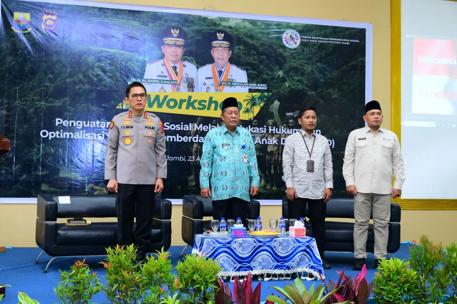 Kegiatan yang dilaksanakan di Hotel Ratu & Resort ini dihadiri oleh Wakil Gubernur Jambi Abdullah Sani, Dir Reskrimum Polda Jambi Kombes Pol. Jimmy Churstian Samma, Dir Intelkam Polda Jambi Kombes Pol. Yuli Haryudo, unsur Pemerintah Provinsi Jambi, perwakilan Kementerian Sosial RI, Kepala Kantor HAM Provinsi Jambi, serta para tumenggung atau pimpinan Suku Anak Dalam se-Provinsi Jambi.