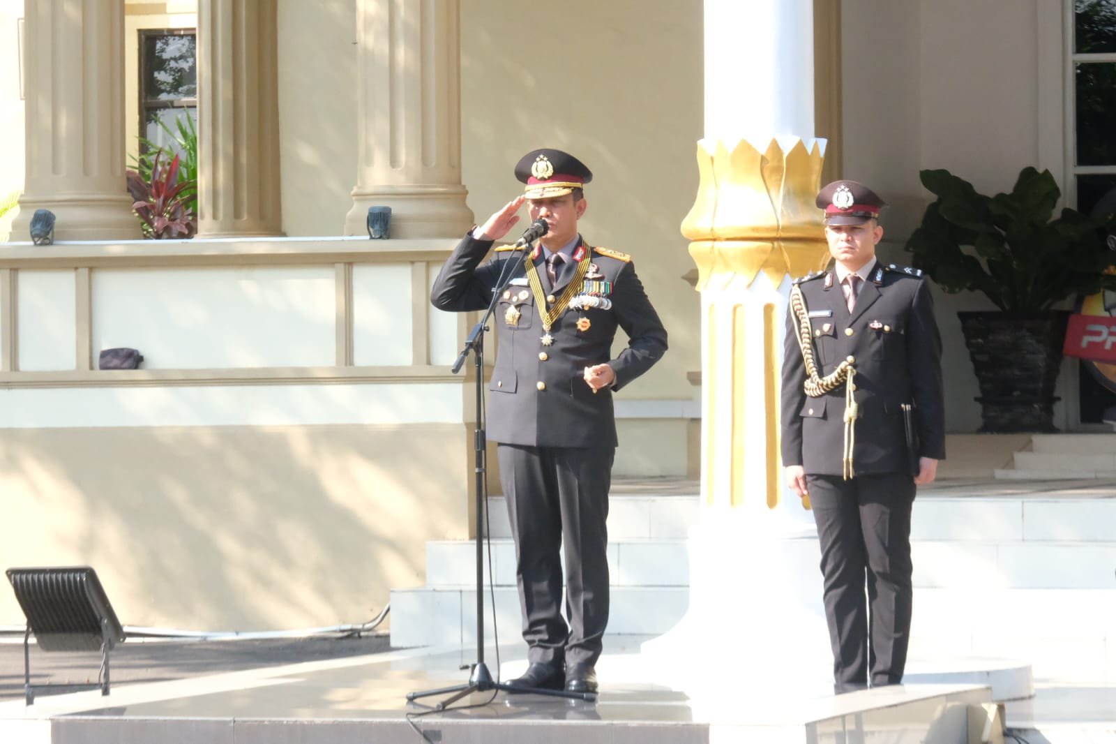 Acara yang berlangsung khidmat tersebut dipimpin oleh Kapolda Jambi Irjen Pol. Rusdi Hartono dengan dihadiri oleh para pejabat utama (PJU) Polda Jambi serta personel Polda Jambi.