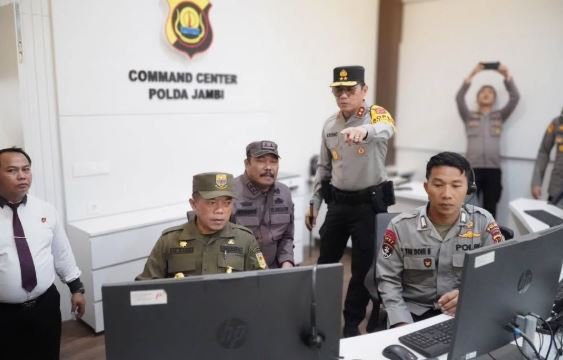 JAMBI,BITNews.id – Kapolda Jambi Irjen Pol Krisno H. Siregar bersama Gubernur Jambi Al Haris dan unsur Forum Koordinasi Pimpinan Daerah (Forkopimda) meninjau langsung layanan Call Center Polri 110 di Gedung Siginjai Mapolda Jambi, usai apel gelar pasukan Operasi Lilin 2025 pengamanan Natal dan Tahun Baru, di Lapangan Hitam Mapolda Jambi.