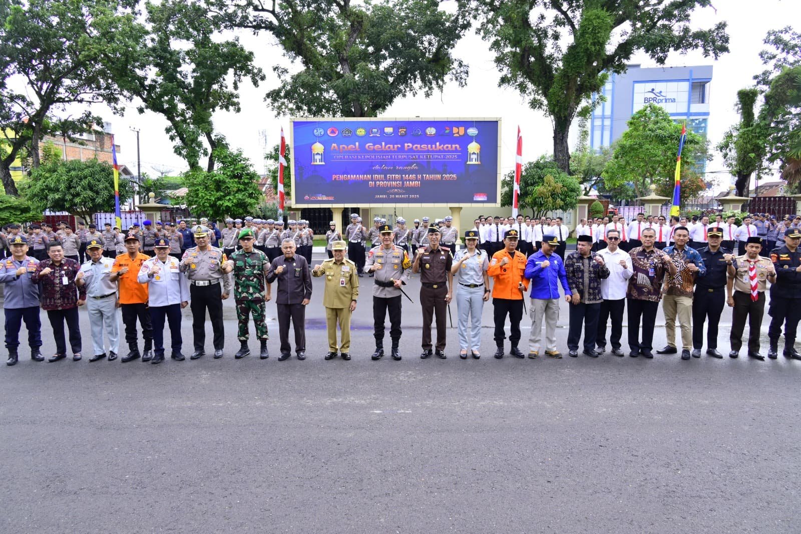 Apel ini dipimpin langsung oleh Kapolda Jambi, Irjen Pol Krisno Halomoan Siregar, S.I.K., M.H., dan dihadiri oleh jajaran Forkopimda, unsur TNI-Polri, serta berbagai instansi terkait.