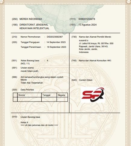 Ia menegaskan bahwa produk oli SR ternyata memiliki sertifikat resmi, sehingga tidak bisa begitu saja dilabeli sebagai produk ilegal.