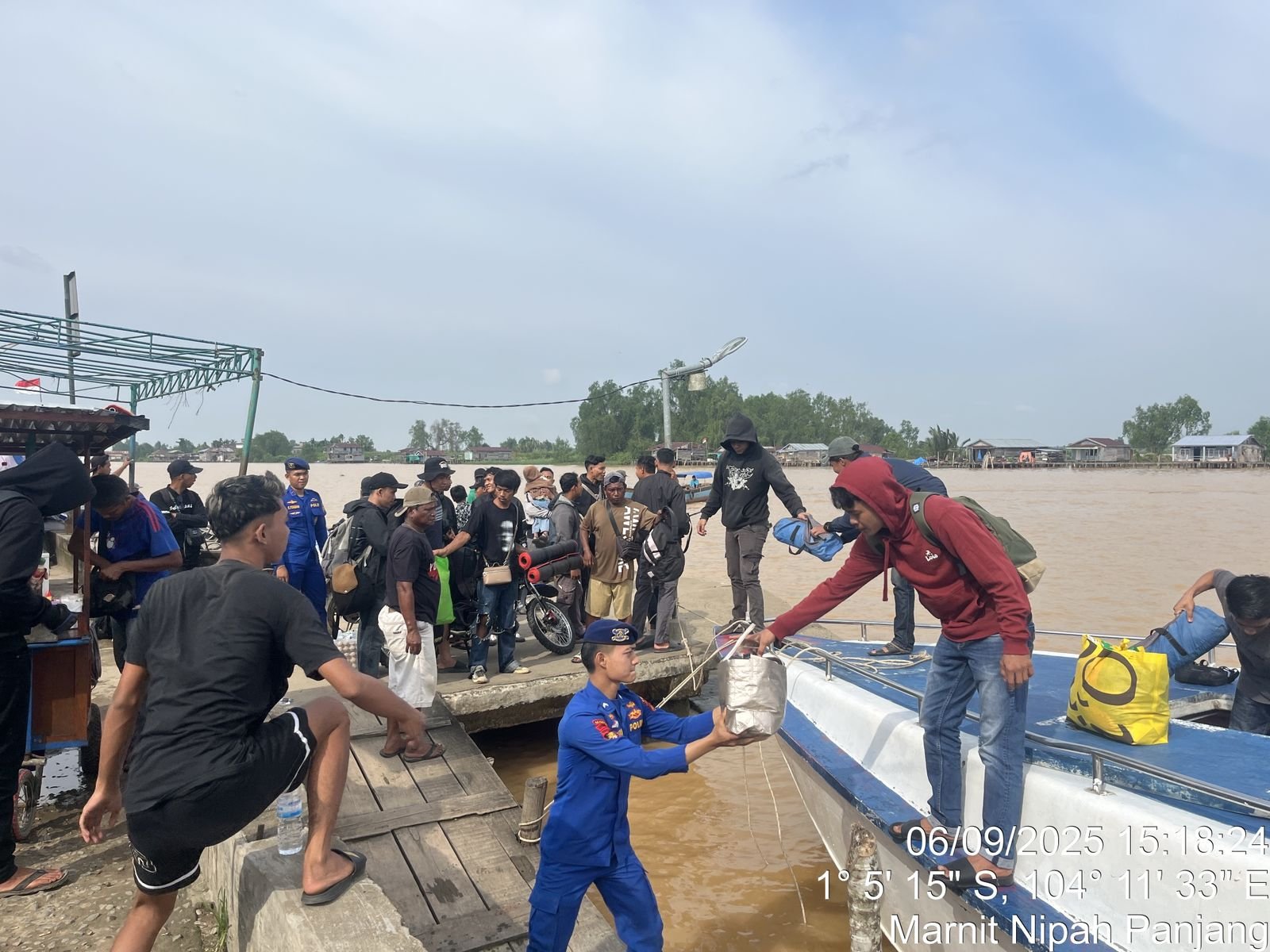 TANJABTIM,BITNews.id – Personel Markas Unit Patroli (Marnit) Nipah Panjang Polairud Polda Jambi melaksanakan pengamanan di Pelabuhan Ancol, Kecamatan Nipah Panjang, Kabupaten Tanjung Jabung Timur, Minggu (6/9/2025) sore.