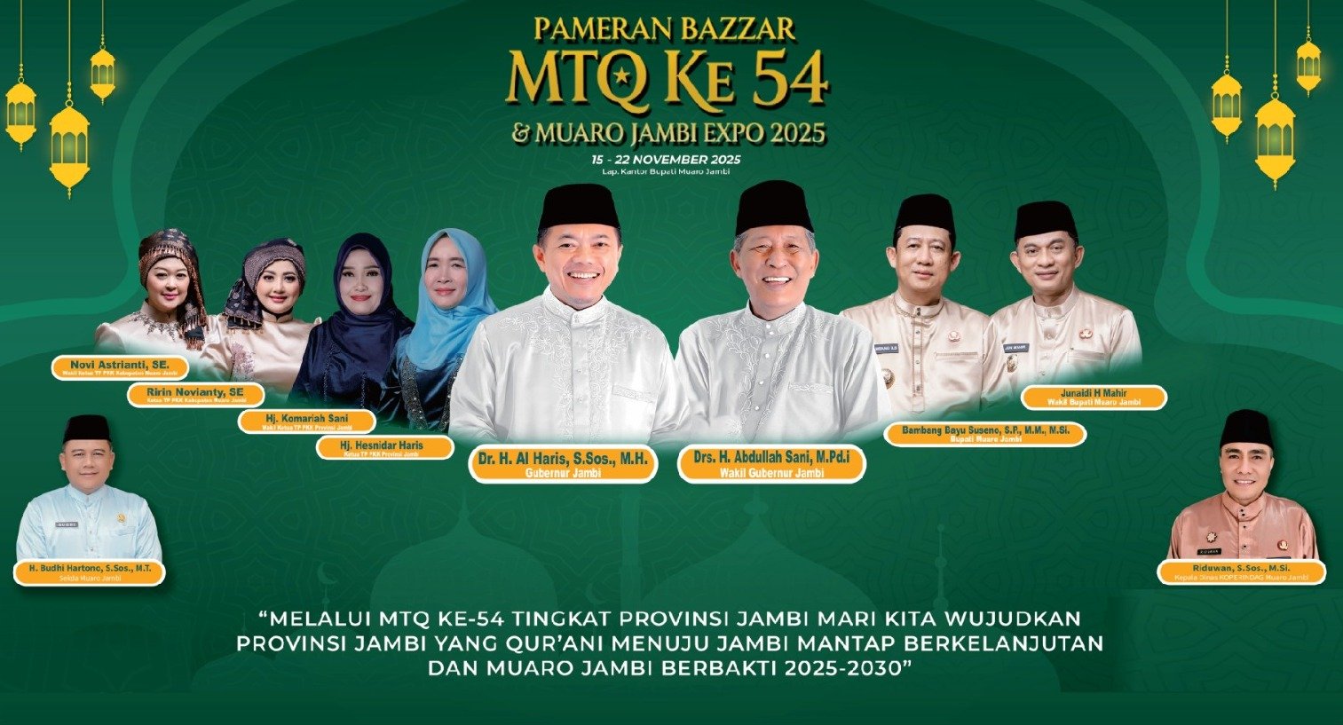 Mengusung tema “Melalui MTQ ke-54 Tingkat Provinsi Jambi Mari Kita Wujudkan Provinsi Jambi yang Qur’ani Menuju Jambi Mantap Berkelanjutan dan Muaro Jambi Berbakti 2025–2030,” kegiatan ini diharapkan dapat memperkuat nilai-nilai religius, meningkatkan kolaborasi antardaerah, serta mendorong pertumbuhan ekonomi lokal.