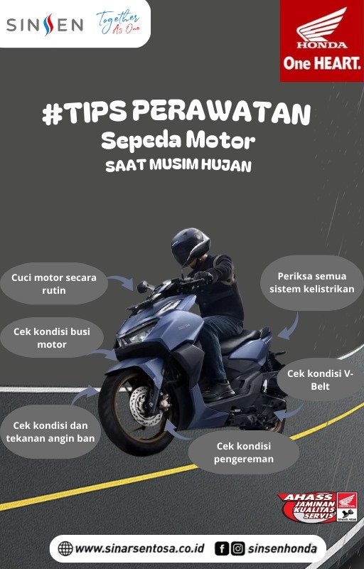 General Manager Service & Parts PT Sinar Sentosa Primatama, Erwin Susanto, mengatakan pengecekan sepeda motor di musim hujan menjadi langkah preventif untuk menghindari kerusakan yang lebih serius.