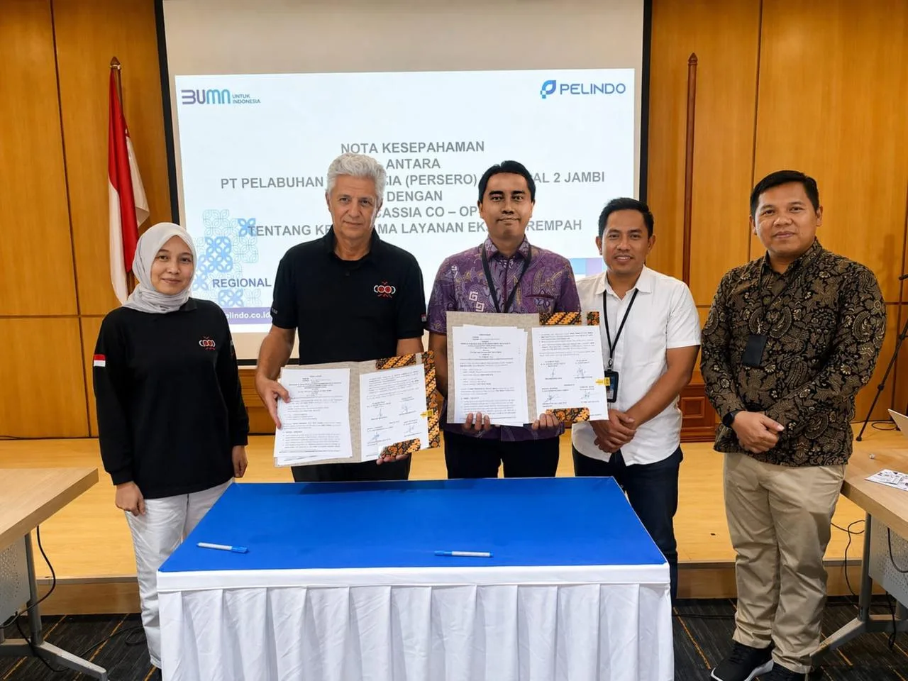 Penandatanganan MoU turut dihadiri jajaran manajemen Pelindo Regional 2 Jambi, IPC Terminal Peti Kemas Area Jambi, serta perwakilan PT Cassia Co-Op.