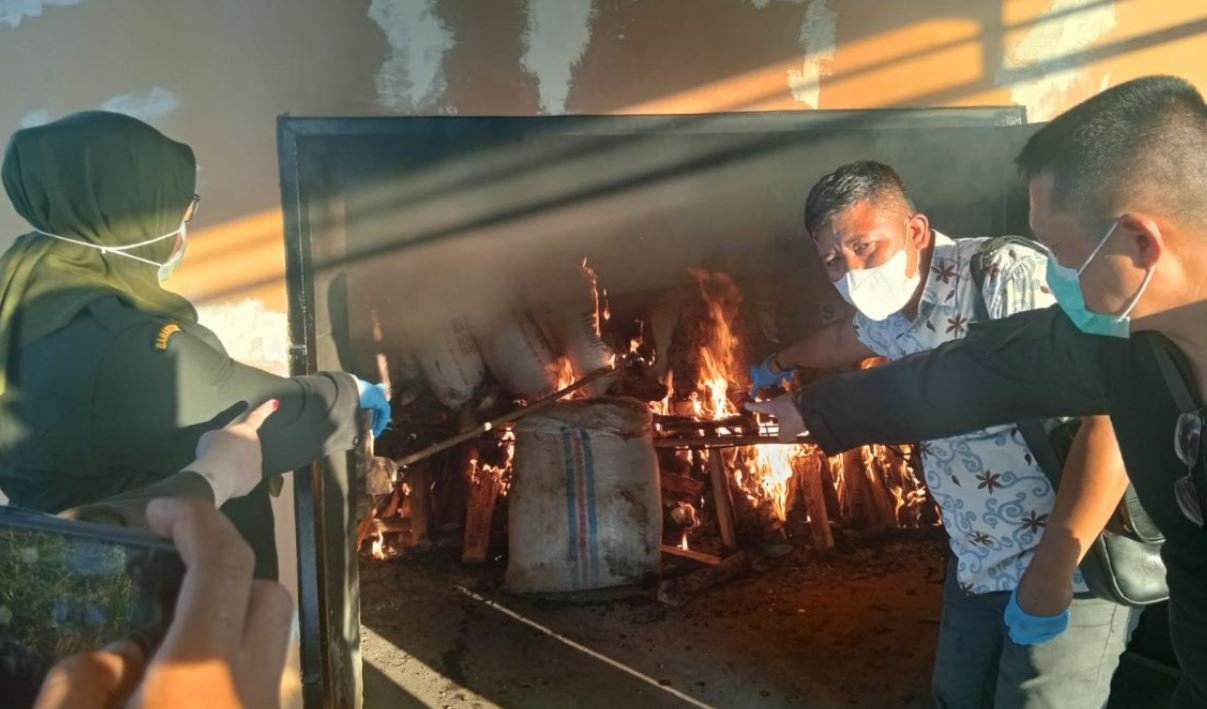 Barang bukti senilai ratusan juta rupiah tersebut dimusnahkan setelah dinyatakan tidak layak konsumsi dan tidak memiliki dokumen karantina yang sah.