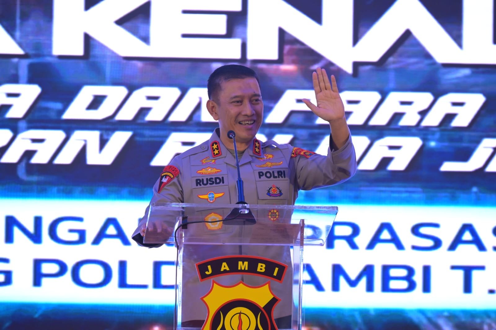 “Kepada rekan-rekan yang meninggalkan Polda Jambi saya ucapkan selamat dan sukses serta terima kasih atas upaya yang telah dilakukan untuk memberikan yang terbaik selama di Polda Jambi. Selamat datang kepada pejabat baru dan selamat bertugas dengan sebaik baiknya di Polda Jambi. Kepada ibu bhayangkari yang telah menemani suami selama bertugas di Polda Jambi diucapkan terima kasih dan diucapkan selamat datang kepada ibu bhayangkari yang menemani suami berdinas di Polda Jambi,” ujar Kapolda Jambi. (Red)