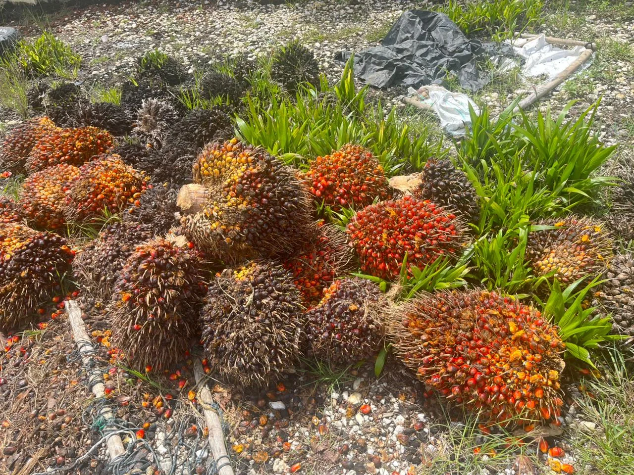 Barang bukti yang berhasil diamankan berupa: 1 (satu) buah dodos, 19 (sembilan belas) tandan buah segar (TBS) kelapa sawit