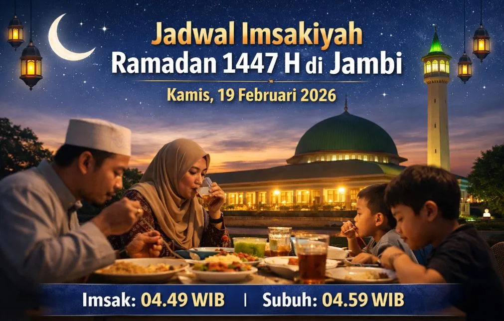 Berikut jadwal imsakiyah Ramadan hari pertama, Kamis 19 Februari 2026, di wilayah Jambi dan sekitarnya: