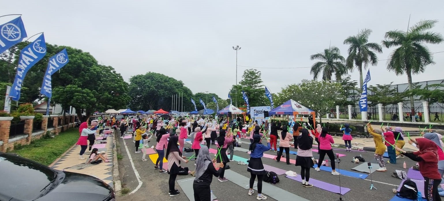 JAMBI,BITNews.id Puluhan Anggota komunitas poundift di Jambi semangat mengikuti olahraga poundift yang berkolaborasi dengan Yamaha Fazzio Hybrid.