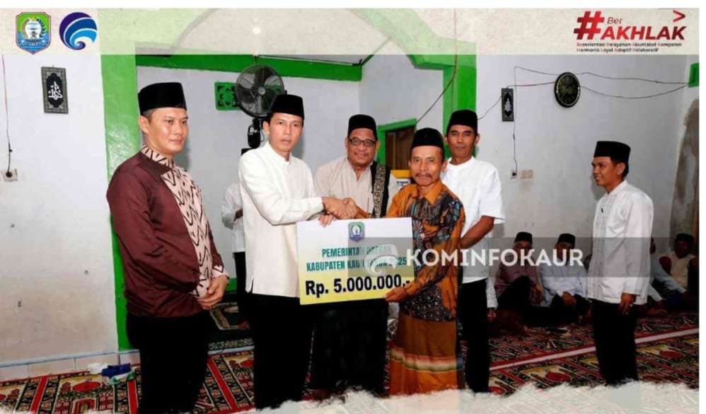 Pada kesempatan tersebut, Bupati Kaur menyerahkan berbagai bantuan, di antaranya, Rp5 juta dari Pemkab Kaur untuk Masjid Nurul Hidayah, Rp5 juta bantuan pribadi Bupati, Rp1,3 juta untuk grup rebana, Rp2 juta dari BAZNAS untuk 20 mustahik