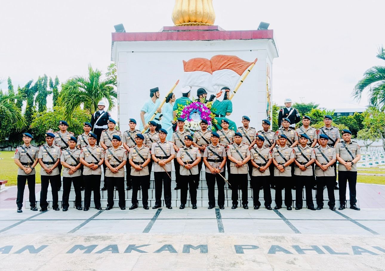Upacara ziarah yang berlangsung khidmat itu dipimpin langsung oleh Dansat Brimob Polda Jambi, Kombes Pol M. Faishal Aris, S.I.K., M.M.