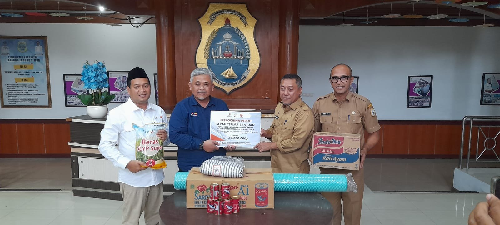 PCJL menyerahkan bantuan penanggulangan bencana banjir kepada Badan Penanggulangan Bencana Daerah (BPBD) Kabupaten Tanjung Jabung Timur pada Senin, 22 Januari 2024.