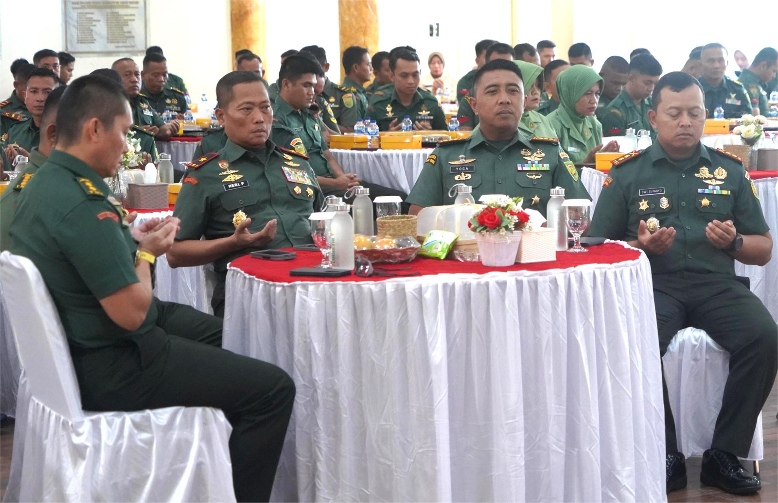Acara syukuran ini ditutup dengan doa bersama dan pemotongan tumpeng yang diberikan kepada prajurit berprestasi dan prajurit yang telah purna tugas.