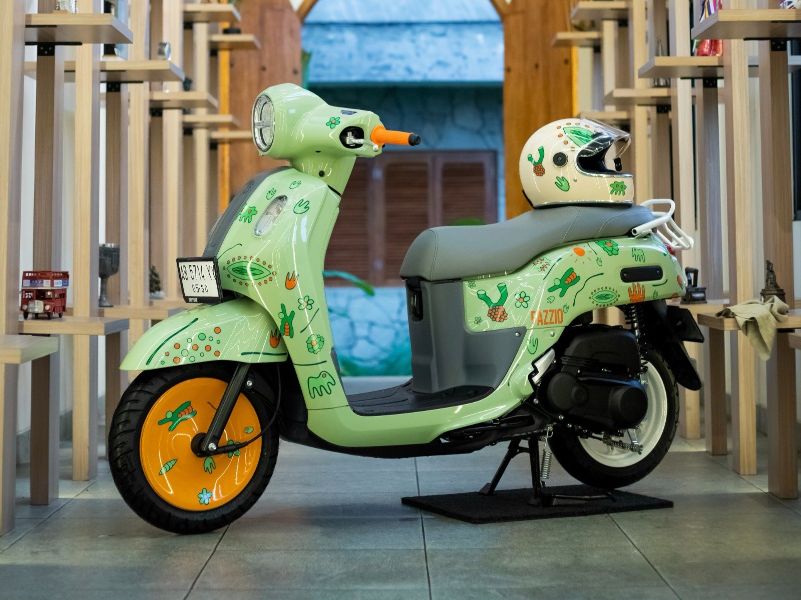 Salah satu contohnya adalah Fazzio Hybrid warna Sage Green milik Sarif, pemuda asal Yogyakarta, yang memadukan desain pabrik dengan stiker bertema mikroorganisme.