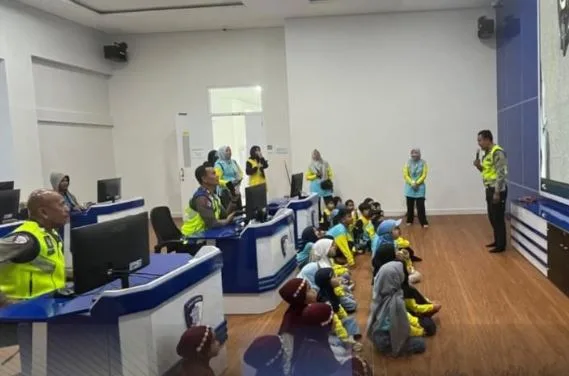 Anak-anak juga diajak mengunjungi ruang RTMC untuk melihat langsung sistem pemantauan arus lalu lintas berbasis kamera pengawas secara real-time di Kota Jambi. Petugas memberikan penjelasan mengenai pelanggaran dan kepatuhan berlalu lintas melalui tayangan tersebut.
