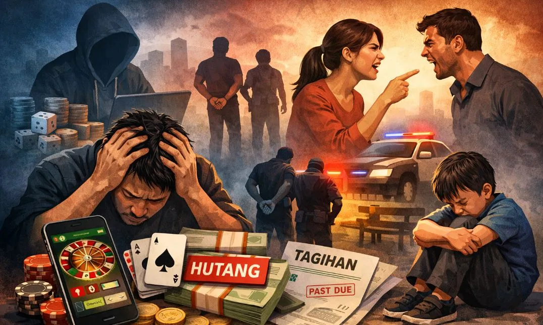 Judi online juga berdampak langsung pada kehidupan keluarga. Banyak kasus menunjukkan penghasilan yang seharusnya digunakan untuk kebutuhan rumah tangga justru habis untuk berjudi.