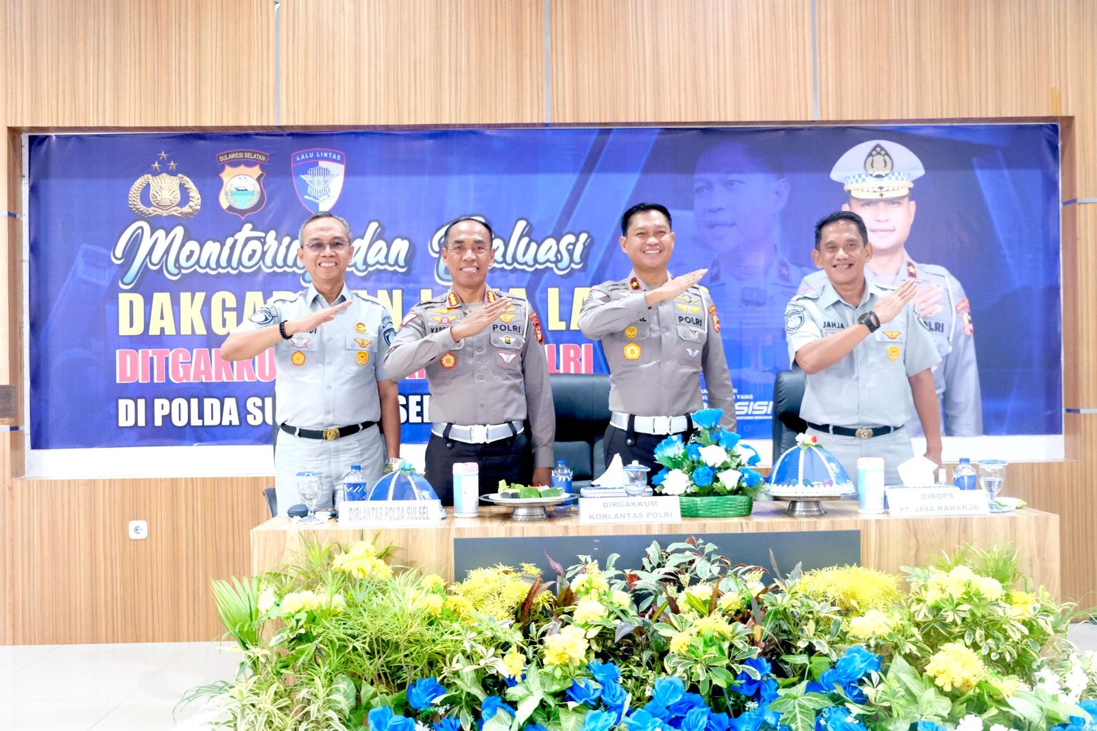 BITNews.id – PT Jasa Raharja turut ambil bagian dalam kegiatan Monitoring dan Evaluasi (Monev) Penegakan Hukum Lalu Lintas yang digelar oleh Direktorat Penegakan Hukum Korps Lalu Lintas (Ditgakkum Korlantas) Polri di Aula Biru Ditlantas Polda Sulawesi Selatan, Rabu (18/6/2025).